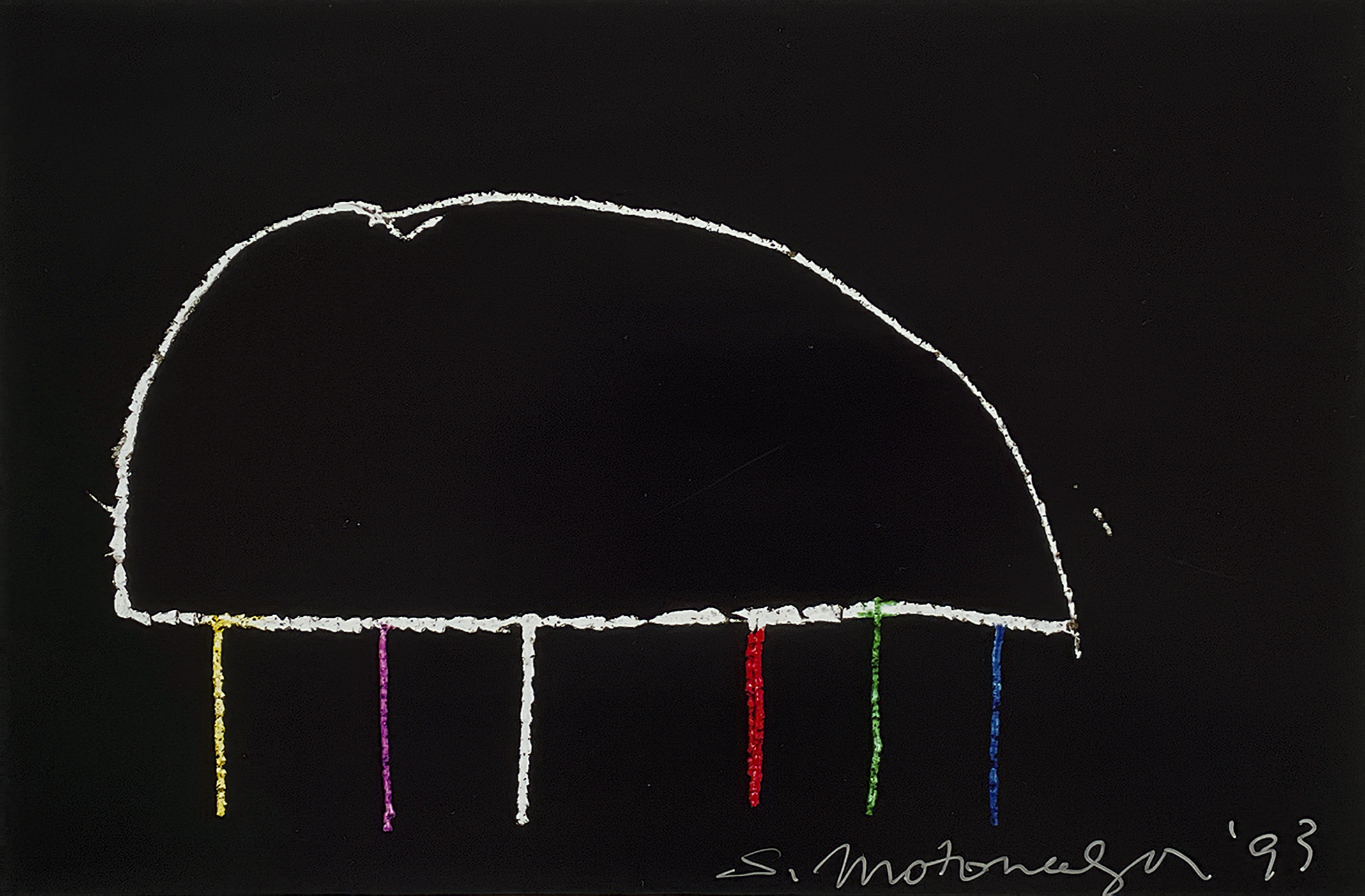 Thereafter in the 1970s, the artist’s scratchy hand-drawn forms reappeared along with the use of canned spray paint, creating a style that was fresh and raw, akin to graffiti and animation. Motonaga occupied a unique position in the Japanese art world, creating a distinct visual continuity between the artists and imagery of the immediate postwar era and the concerns that emerged in the work of contemporary painters such as Takashi Murakami, Yoshitomo Nara, and beyond.